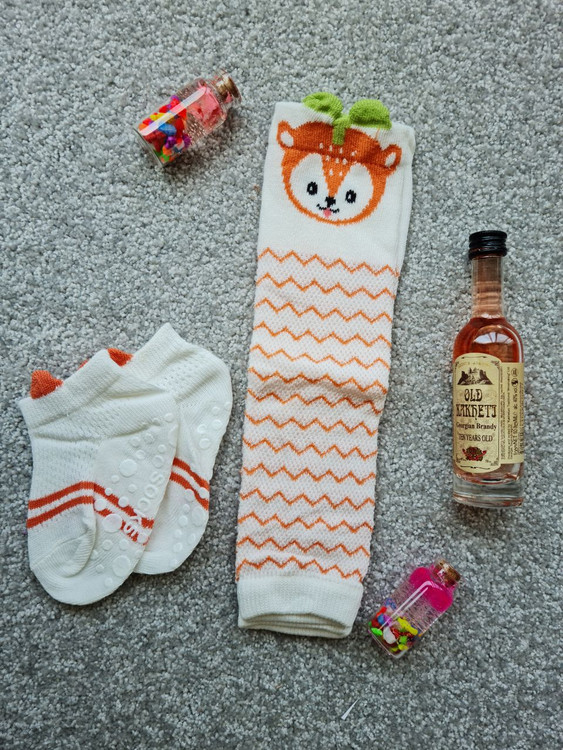 از ۱۰ ماه الی ۲/۵ سال کف جوراب ۱۱ سانت و تا ۱۳ سانت کش میاد و پهنای جوراب زیاده